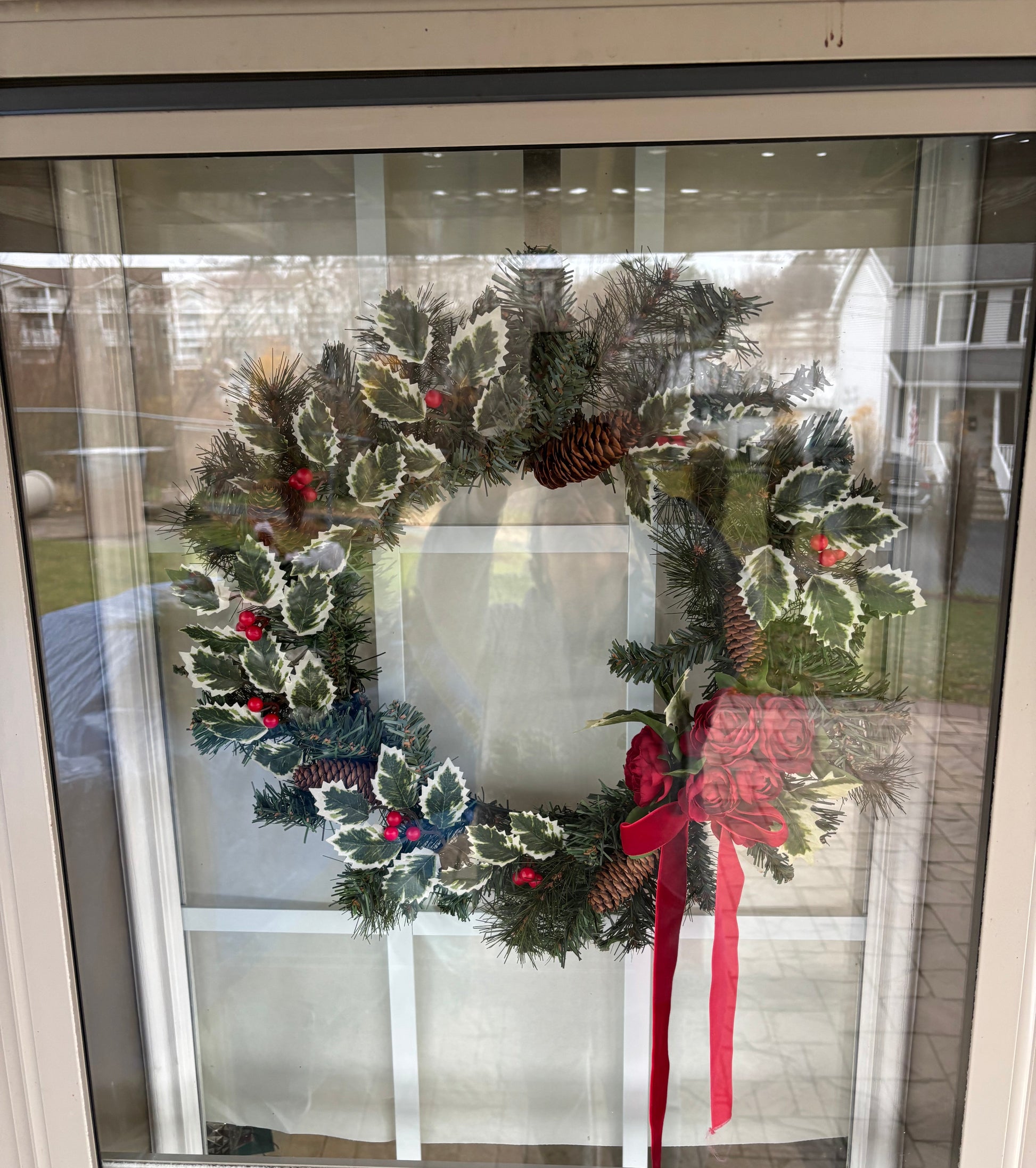 Picture is based on 9-light door before and after storm door closes to illustrate the compactness of the wreath, with no worries of flattening the design. Perfect for Skinny Door applications.
